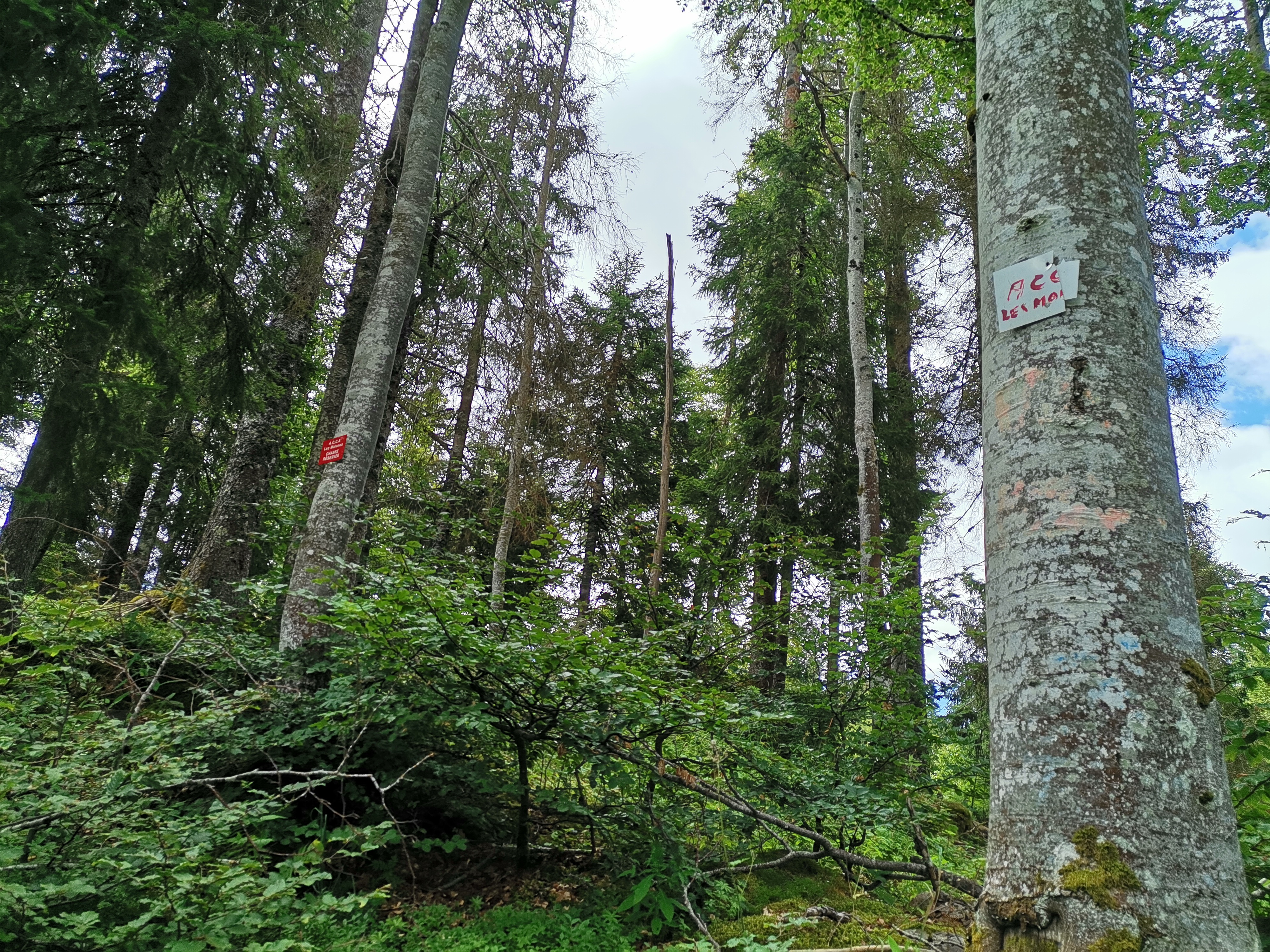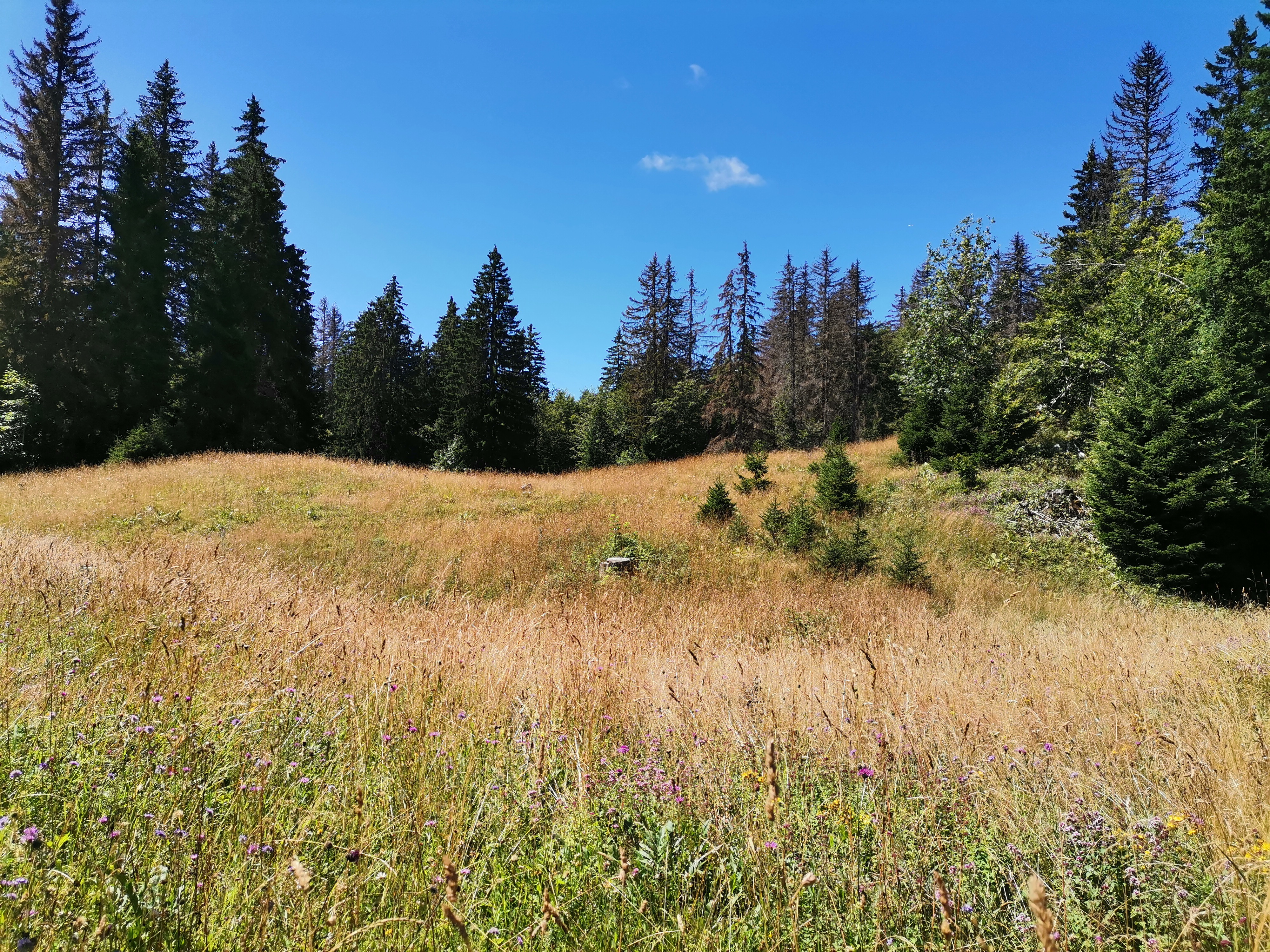 Les parties boisées de cette forêt d’altitude présente un fort potentiel de biodiversité. Toutes les strates de la végétation sont présentes avec une strate basse herbacée, mais également des arbrisseaux (framboisiers, myrtilliers) des arbustes et des grands arbres de tailles diverses (Epicéa, Sapin et Hêtre principalement). Cette forêt comporte également d’autres éléments intéressants pour la biodiversité, des affleurements rocheux, des murets, des blocs de calcaire, de petites cavités sous les racines des arbres etc.